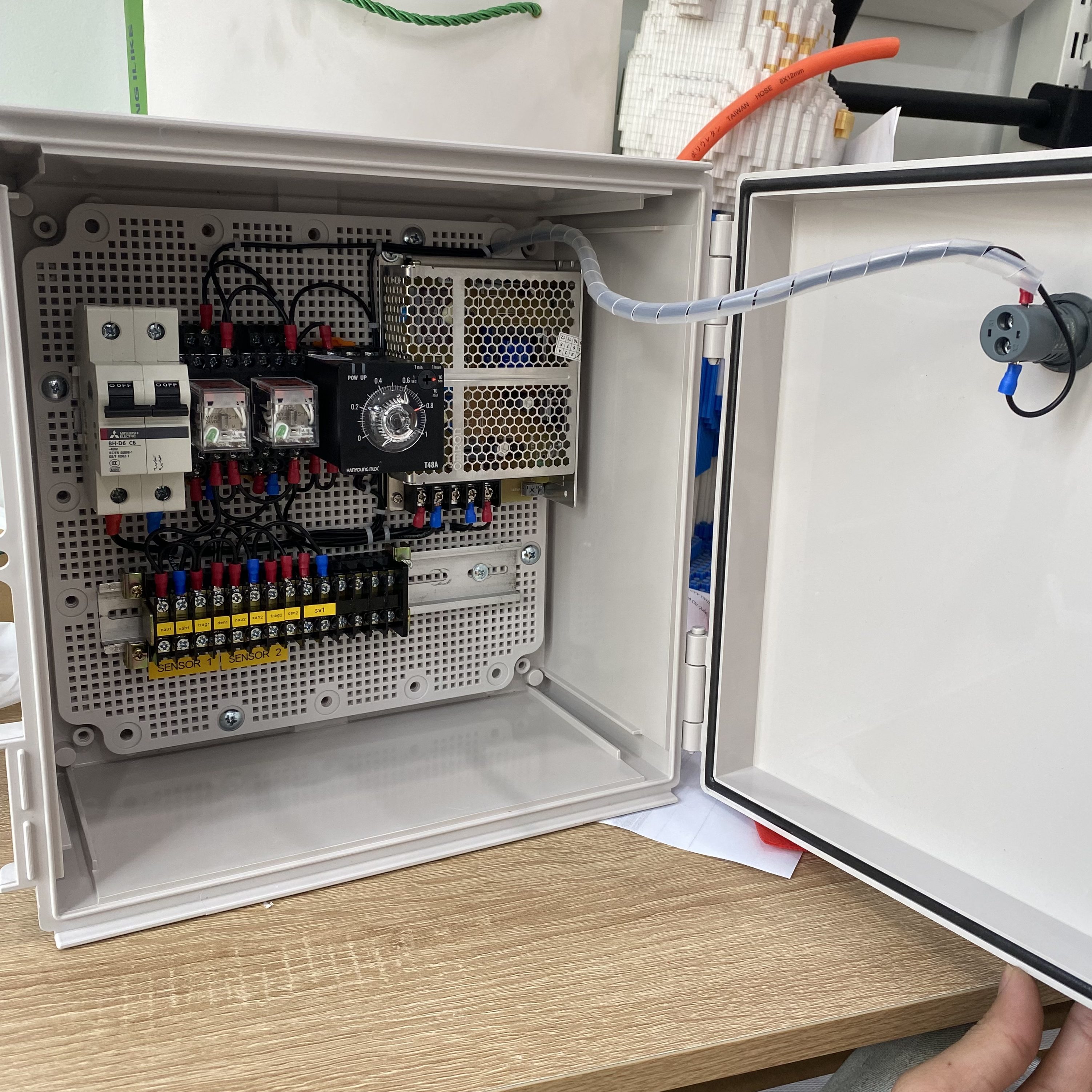 Một tủ điện điều khiển van nước có cảm biến thường được thiết kế gồm các thành phần chính sau: