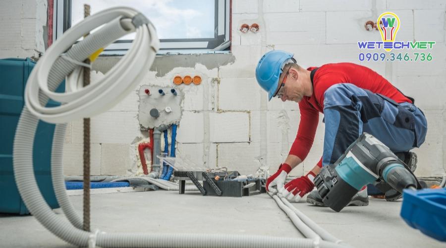 - Dụng cụ cần thiết như kéo cắt ống, dao rọc, thước đo, bút đánh dấu, dụng cụ uốn ống, dây mồi luồn dây,…